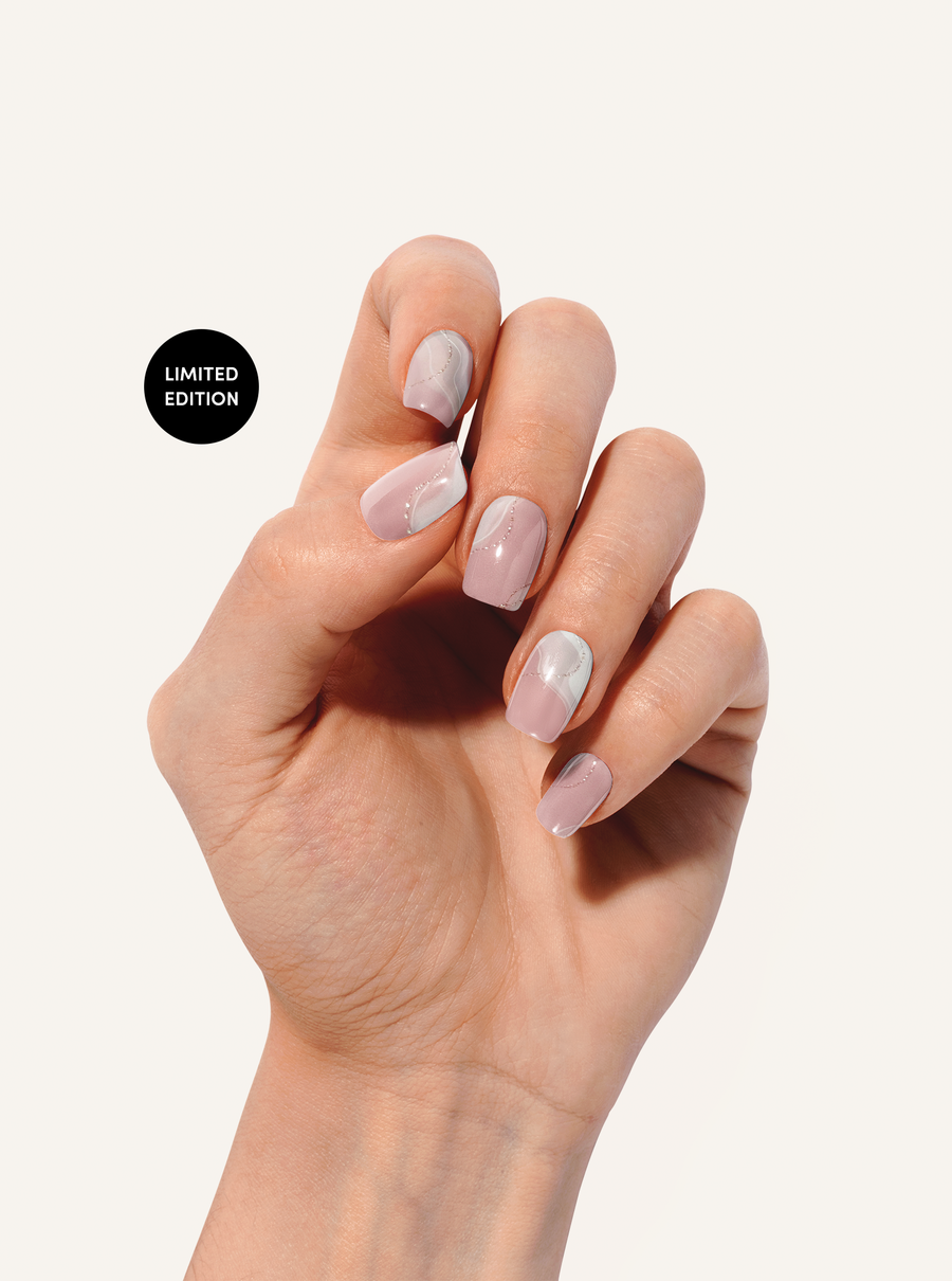 Laque gel nail stickers in Disco Fever have a subtle nude base combined with silver glitter for a sparkling, festive touch. These stickers strike the perfect balance between a neutral, natural look and striking glamour thanks to the dazzling glitter.